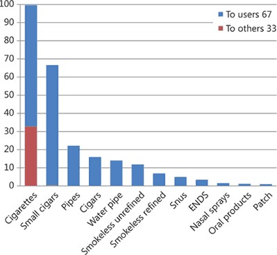 Seperti yang ditampilkan dengan jelas di atas, ENDS (e-cigs) memperoleh skor kurang dari 5, artinya perangkat tersebut membawa sekitar 5% risiko merokok. Dengan kata lain "vaping setidaknya 95% lebih aman daripada merokok".