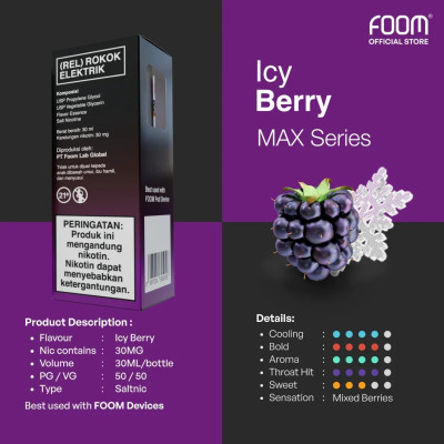 Campuran buah berry emang segernya gak ada yang pernah ngalahin. Foom Max hadir dengan rasa Icy Berry yang mengkombinasikan berbagai macam campuran buah berry seperti strawberry, blueberry, dan raspberry.