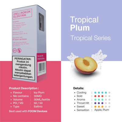 Kalo pernah cobain buah plum gak? Nah kalo belum, ini saatnya kamu cobain liquid Foom Tropical Plum. Dijamin rasanya mirip banget kayak buah plum aslinya, ditambah sama sensasi dinginnya yang makin nampol dan fresh.