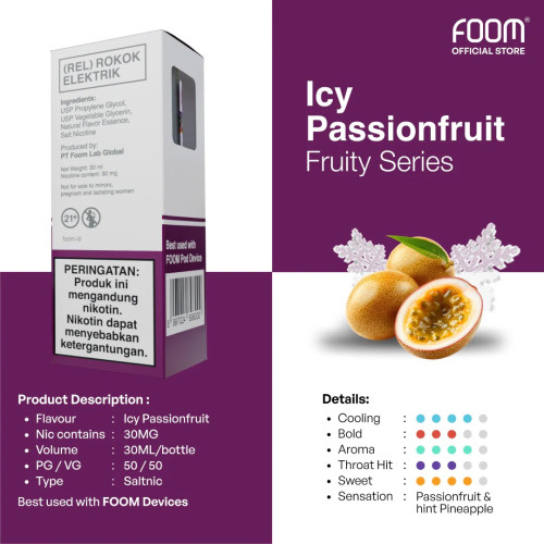 Siapa sih yang gak kenal liquid salt nic buatan Foom ini? Pasti semua vapers menyarankan liquid ini. Foom Icy Passionfruit menjadi salah satu list liquid yang enak dan wajib kamu coba.
