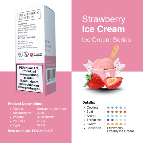 Rekomendasi liquid strawberry yang satu ini pasti sudah tidak asing lagi di kalangan vapers, yaitu Foom Strawberry Ice Cream.