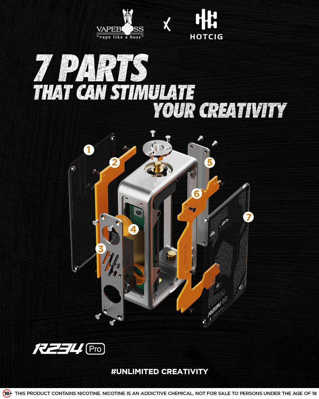 R234 Pro adalah vape elektrik (electrical box mod) yang dirancang untuk pengguna yang menginginkan fleksibilitas dan kustomisasi. Dengan USP unik berupa beberapa part yang dapat dikustomisasi, R234 Pro memungkinkan Anda untuk menciptakan pengalaman vaping yang benar-benar sesuai dengan preferensi Anda. Dari desain eksterior hingga pengaturan performa, setiap bagian dapat disesuaikan untuk memberikan performa optimal dan gaya yang unik. R234 Pro bukan hanya sekadar perangkat vape, tetapi sebuah pernyataan gaya dan inovasi.