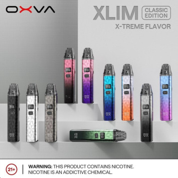 The Oxva Xlim Classic Edition comes with a 1000mah battery and two xlim top fill cartridges. it stands out for fine carving gradient craftsmanship and a fast-charging settings, and it offers a long-lasting x-treme flavour vaping experience.